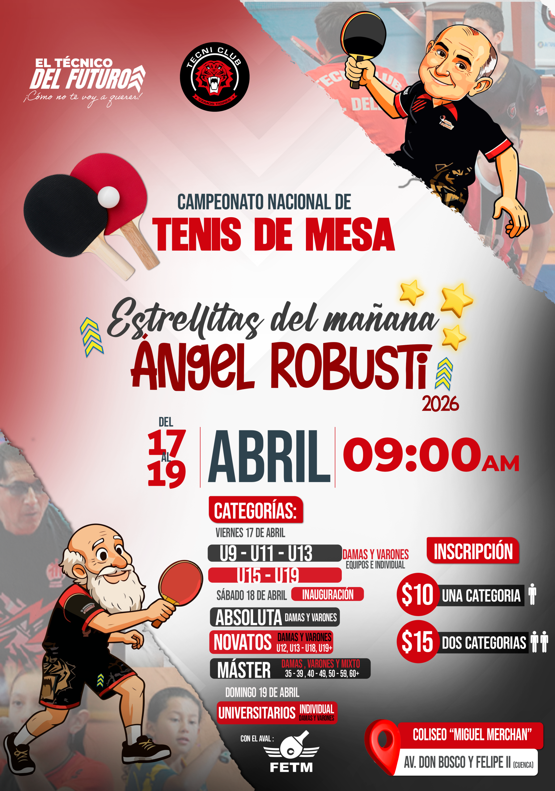 Coliseo Miguel Merchán - Unidad Educativa Técnico Salesiano Av. Don Bosco 2-47 y Felipe II, Cuenca, Azuay, EcuadorDOCUMENTOS IMPORTANTES: Prospecto Ficha de Inscripción Carnetización ¡Juntos por el Tenis de Mesa!